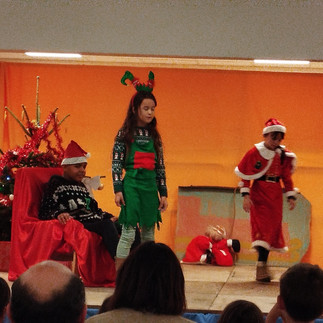 Ce mercredi après- midi était sombre et pluvieux... Pourtant, la salle polyvalente de Donzac était illuminée de mille feux et attirait de nombreux spectateurs... Pourquoi ? Parce que c'était le Spectacle de Noël des associations donzacaises bien sûr ! 4 associations du village s'étaient réunies pour la plus grande joie des enfants de l'école et de leurs familles. Les jeunes membres des 4 assos avaient préparé un vrai spectacle de Noël. Au programme ? Des scénettes , des parcours sportifs en musique, et puis des surprises : la venue de la mascotte des footballeurs, l'entrée dans la salle polyvalente du Père Noël accompagné d'un poney et de ses lutins...Le club de théâtre "L'Atelier des 2 rives" s'est produit avec ses comédiens âgés seulement de 6 à 13 ans avec des scénettes drôles sur le sport, le foot, le Père et la Mère Noël... "Les chaussures de foot magiques du Père Noël", "le match magique du Père Noël"... ont été inventées par Aymrif Faure, professeur de théâtre et metteur en scène à "L'Atelier des 2 rives". Le club de football du Brulhois a présenté, autour des éducateurs Enzo et Adrien des parcours sportifs en musique. Et le club "Garonne tennis" a mis en avant l'habileté de ses jeunes joueurs avec un autre parcours, dans une musique rythmée... Enfin, l'arrivée du Père Noël accompagné de son poney (venu du Ranch du Bois Jourdan) et de ses lutins a surpris tous les enfants et leurs parents : de quoi laisser des souvenirs inoubliables à toutes et tous ! Joyeux Noël !!!